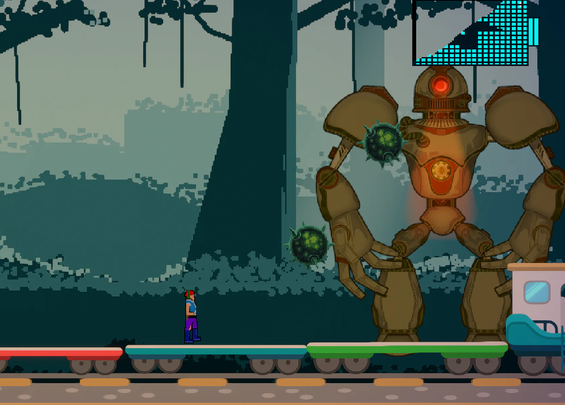 My third game, and my first 2D side-scroller: In this game, I created a story where a woman is heading home and encounters robots she must fight to make her way back to her wife.